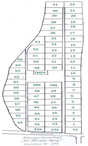 Hier finden Sie einen Plan unserer Sparte. Wenn Sie die gewünschten Garten (links vom Übersichtsplan) anklicken, erhalten Sie weitere Informationen zu diesen Gärten.